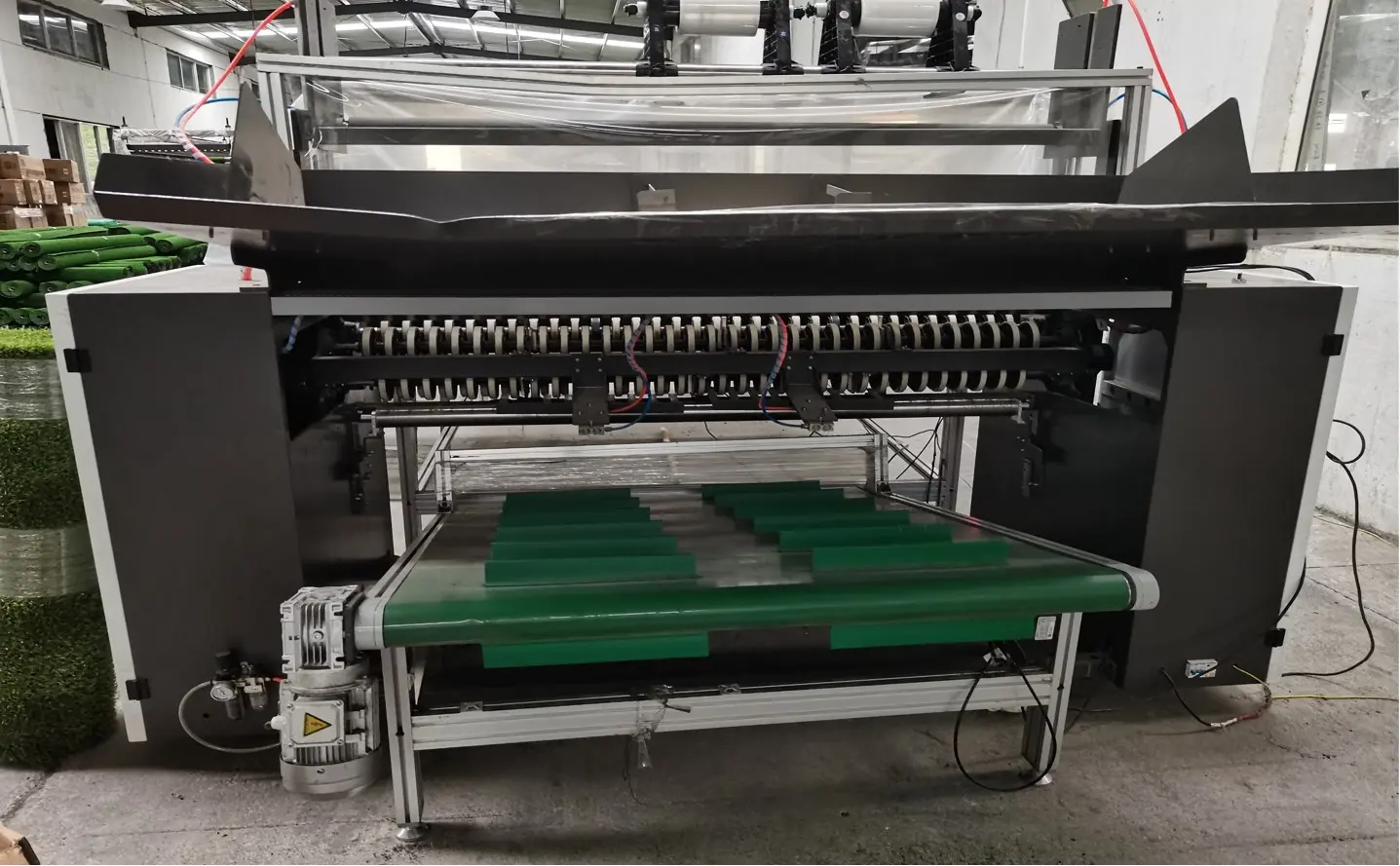 Recientemente, un nuevo miembro se incorporó a nuestro taller de producción: ¡una máquina enrolladora de césped artificial totalmente automática! Esta máquina es una verdadera maravilla para el enrollado, lo que facilita enormemente el empaquetado del césped.